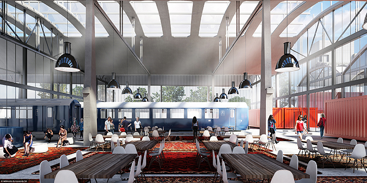 Architect Jean-Michel Wilmotte appears to be preserving not just the grand scale and scope of the train station, but some cargo train features. The new site is structured around “container-based architecture,” both as a salute to the site’s history and to foster discussion, knowledge sharing, and healthy competition.