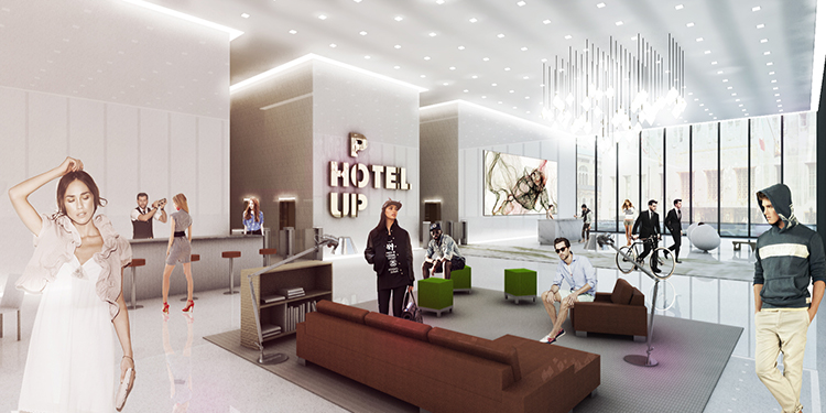 The conceptual design won first prize in the Radical Innovations in Hospitality contest this year. Now, though vacancy rates in Midtown have gone down, Pink Cloud wants to bring the idea to other struggling buildings and neighborhoods.