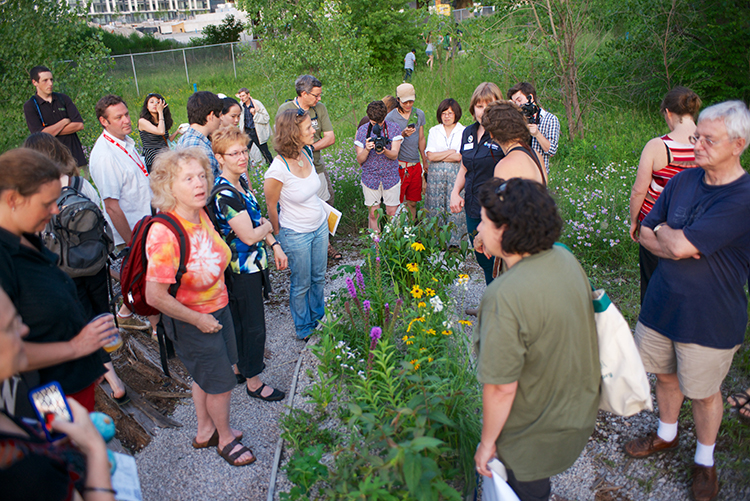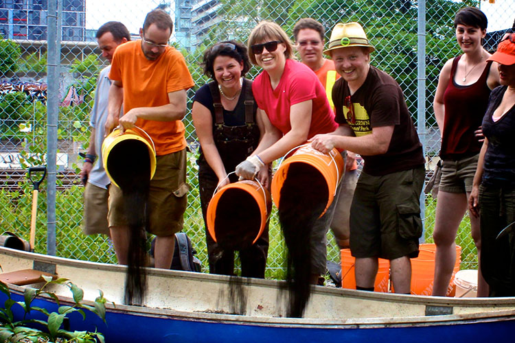 After putting out a call for neighbors interested in volunteering to be community leaders, the group picked 21 park rangers to work on the project over the summer. They gave the volunteers some basic training in skills like fundraising, introduced them to local groups like the Toronto Beekeepers, and showed them a few examples of urban interventions, such as guerrilla gardening and moss graffiti.