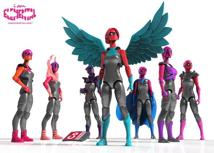 And we’re talking action figures here, not dolls. Nadeau and Kerwin noticed that there were plenty of female dolls to choose from in what they call the pink “girl ghetto” of toy stores, but hardly any four-inch-tall, plastic heroines with articulated joints. So, last fall, Nadeau and Kerwin, who met at through their kids’ jazz class, decided to strike out on their own with a line of female action figures personifying seven elements of courage: bravery, energy, honesty, industry, enthusiasm, persistence, and fear. Instead of bust sizes bigger than their heads, the $8.99 IAmElemental figures have powerful-looking quads. Nadeau and Kerwin also worked with design firm Eleventy Plex to erase canyon-like buttcracks, while giving one of the figures flames shooting out of her shoulders.
