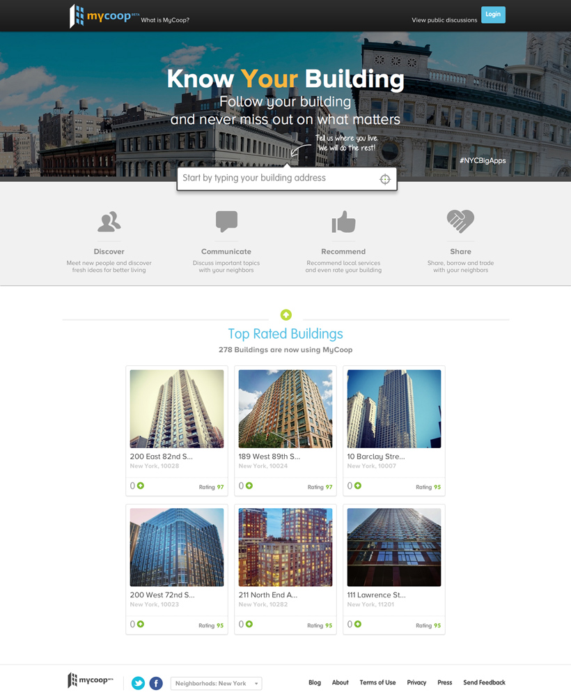 If you live in a densely packed city and don’t own a can-opener, it’s unlikely you’ll descend several flights of stairs and ask someone in the building next door if you can borrow one. You’d probably just ask someone who lives in your own building, which is just one of the many reasons why Alex Norman created MyCoop (pronounced “my-koop,” not “co-op”), a free, private social network for city buildings so residents can barter, swap services, and circulate important updates.