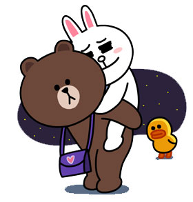 Despite their cherubic appearance, these characters are explicitly adults, and part of their appeal is that they seem to have lives beyond their existence as mere pieces of digital content. Cony and Brown, for example are romantically involved: One sticker set shows them going out to dinner, shopping for a handbag, watching a 3-D movie, and–Hello Kitty this isn’t–lying in bed together. “Moon’s Dieting Special” offers images of him doing sit-ups and dolefully staring at a plate of vegetables. A pack of James stickers includes one depicting the usually ebullient fellow unshaven and dozing in front of the TV with empty cans at his feet, suggesting a rare moment of personal crisis.