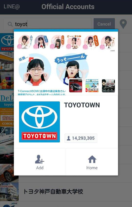 Everyone from Kit Kat and KFC to the prime minister’s official residence finds the proposition to be worthwhile. After Toyota airs a new commercial in its Toyotown campaign, for instance, it can follow up by offering its 14.3 million Line followers stickers featuring AKB48, an insanely popular Japanese girl group with (at last count) 187 members. The automaker gets its message out; consumers get free stuff; Line gets paid. Everybody’s happy. Official accounts and merchandise make up the rest of Line’s revenue mix.