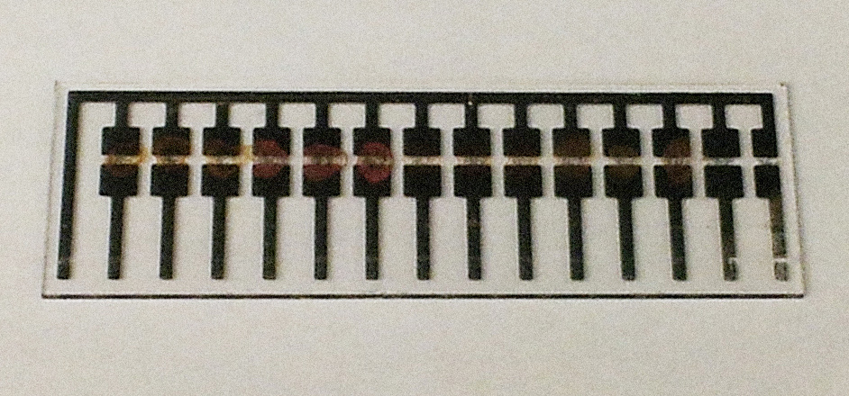 The device could be several inches away, like with a contactless payment or ticketing system. The sensor inside the packet contains high-tech nanotube material that reacts to the amines. It’s really nothing more than two contact points with a conductive strip running between.