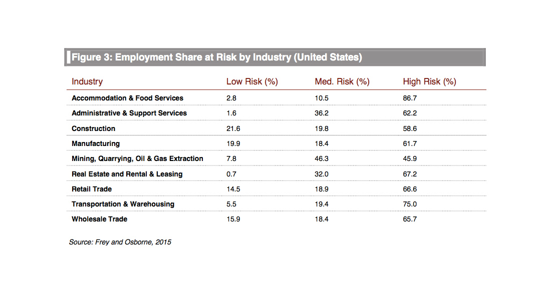 Companies are already facing challenges in terms of community relations and license to operate in light of a stagnant economy. Surging unemployment would further damage social cohesion and erode community trust. If automation leads to a shift away from labor-intensive manufacturing, there could also be significant macro-level, long-term impacts on the economy and business. Exacerbating existing jobless growth would contribute to additional downward pressure on consumer demand, creating a vicious cycle depressing economic vitality.