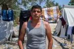 A 34-year-old pharmacist stands with the bag that holds all he has left from Syria, including a flash drive with family photos. “I had to leave behind my parents and sister in Turkey,” he told the IRC. “I thought, if I die on this boat, at least I will die with the photos of my family near me.”