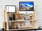 The rest of the design is just as clever. Holes are cut in the rear of each shelf for cables to pass through and stay out of the way as you adjust shelf height. The top shelf is actually two overlapping shelves that can hold a monitor and a notebook at different heights, which actually puts the screens at the same height as each other. This is ergonomically sound, as it keeps you from having to nod your head constantly while you work.