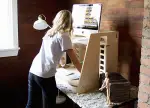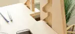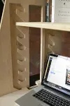 The most important feature of the Perch is its adjustment system, which lets you change the height of its shelves on the fly, even when they’re loaded with a heavy computer monitor. The Baltic birch plywood shelves have tongues that protrude from the side and hook into a kind of ratcheted notch system that is routed out of the side panels. This, along with handles cut into the edges, lets you grab a shelf, tilt it to unlock it, then lift or lower it. The shelf then seats itself correctly when you’re done.