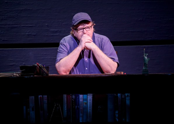 For now, though, Moore is focused on transforming every single person who comes to see The Terms of My Surrender, which runs through October 22, into an active member of the resistance movement. Some critics have complained that Moore is preaching to the converted. And they’re not wrong about that. Moore knows full well his audience is full of like-minded people who are against Trump’s vile politics. What Trump supporter is going to shell out money to see Moore on Broadway?