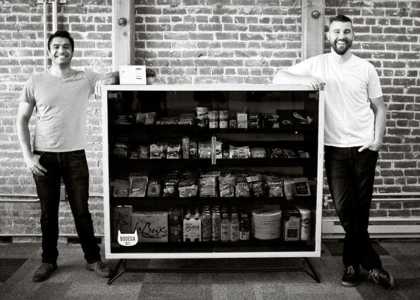 For the past 10 months, the pair has been testing out the concept at 30 locations in the Bay Area ranging from apartment lobbies to dorms to offices to gyms. The idea is to preempt what people might need, then use machine learning to constantly reassess the 100 most-needed items in that community. In a sorority house, for instance, young women might regularly purchase pretzels, makeup remover, and tampons. Meanwhile, in an apartment block, residents might regularly buy toilet paper, pasta, and sugar. When an item is bought, Bodega gets a note to replace it, and regularly sends people out to restock the boxes.