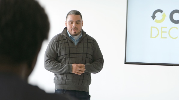 For much of the morning session, New Profit’s affable, deliberate managing partner Tulaine Montgomery holds court. But about an hour in, each of the entrepreneurs steps up to share their story through what is called a PechaKucha presentation, in which speakers are tasked with compiling a 20-slide photo presentation and can only spend 20 seconds explaining each slide.