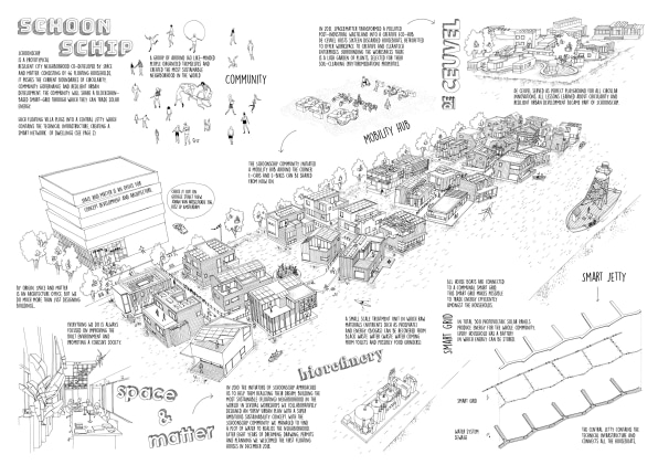 In a canal in North Amsterdam, a new neighborhood is taking shape–out on the water. The goal: to “make a really circular, resilient, floating neighborhood,” says Sascha Glasl, cofounder of Space&Matter, the architecture firm that designed the project.