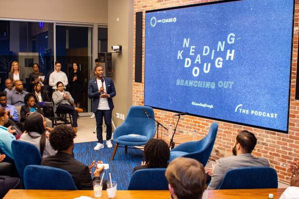 Branching Out is part of a larger brand partnership with Chase Bank, which also sponsors Kneading Dough. The podcast is actually recorded in local branches (Butler was recorded in Washington, D.C., and Cherry in Chicago), but beyond that, the brand thankfully stays in the background. Lois Backon, head of corporate partner marketing JPMorgan Chase, says this isn’t about selling a specific product, but rather being a part of a larger conversation that makes talking about money easier.