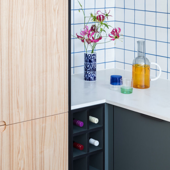 Throughout the space, Hølte’s boldly colored handles, countertop surfaces, and hand-finished cabinet fronts (which are custom designed for Ikea’s Metod modular kitchen line) upgrade Ikea’s formula into inspired bespoke pieces. The result? A bright and unique take on Ikea’s functional staples.