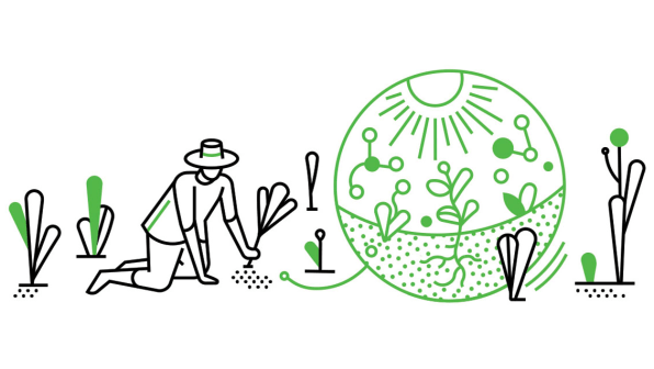 During photosynthesis, plants use solar energy to extract carbohydrate molecules, or sugar, from carbon dioxide. Those carbon-based sugars are extruded from the plant’s roots, feeding bacteria and fungi into the nearby soil. Those microorganisms turn soil minerals into nutrients that feed plants and fight disease.