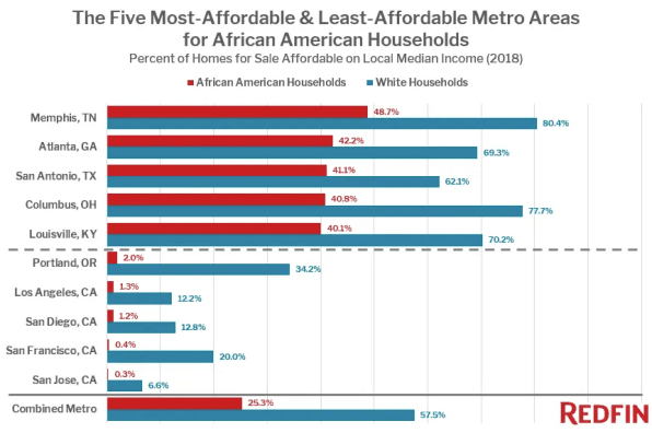 Buying an affordable home isn’t easy for the typical African American family, according to new data from Redfin.