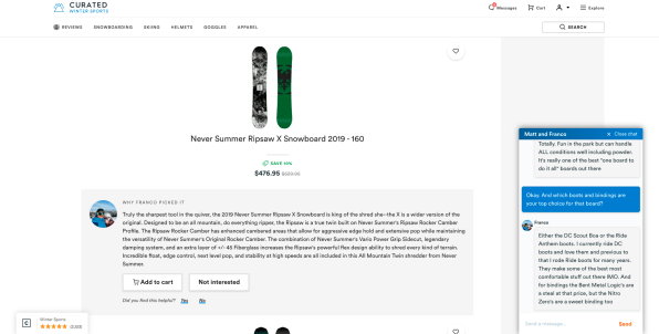 In its early testing and soft launch, Curated focused on sports like skiing or snowboarding, but Vivas says the model could apply to many other fields, helping customers, say, buy musical instruments or vintage cars.