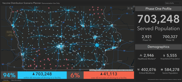• Protecting the most vulnerable: Smart maps that display U.S. Census Bureau data about age and income, layered with information about senior living facilities, homeless encampments, hospitals, and clinics, have become vital. With simple spatial analytics, this layered information can create localized risk scores that are highly actionable.